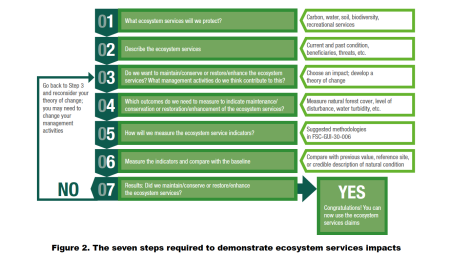 - Ecosystem Services Claims: Verified impacts give rise to FSC ecosystem services claims, which will provide governments, investors, buyers, and businesses with assurance that the impacts they are paying for do preserve ecosystem services
